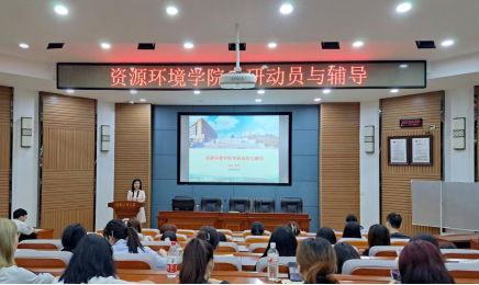 6月27日上午,资源环境学院在湖南工商大学南校区乐知楼F201召开考研动员与辅导大会,会议由资源环境学院执行院长陆杉主讲,南校区大二考研生参加会议。